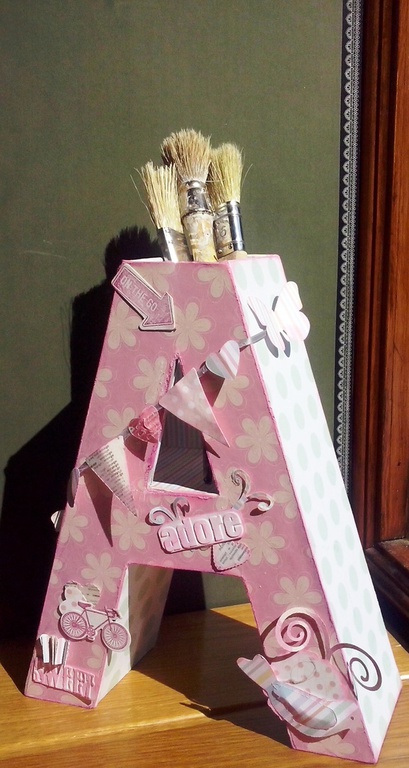 LLETRA 3D construida amb la Tècnica de Cartonatge Italià. Tallem el cartró a la mida que desitgem i montem la nostra lletra.